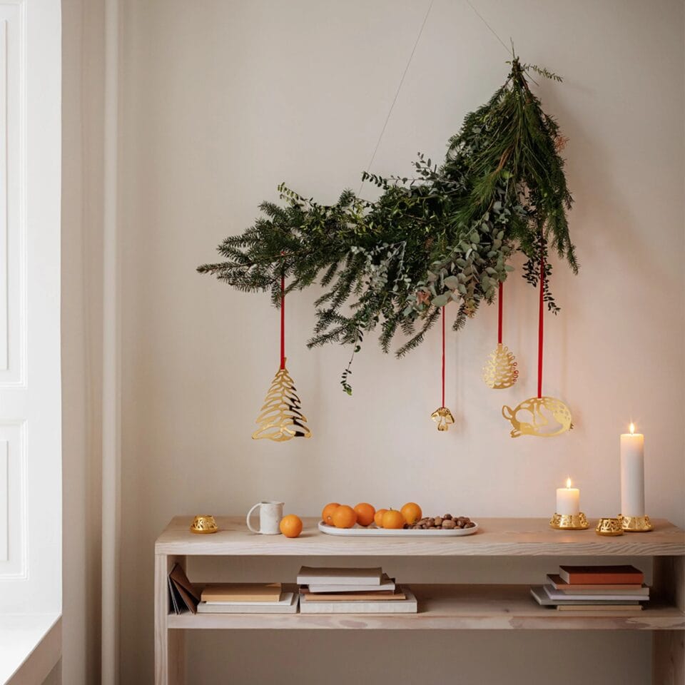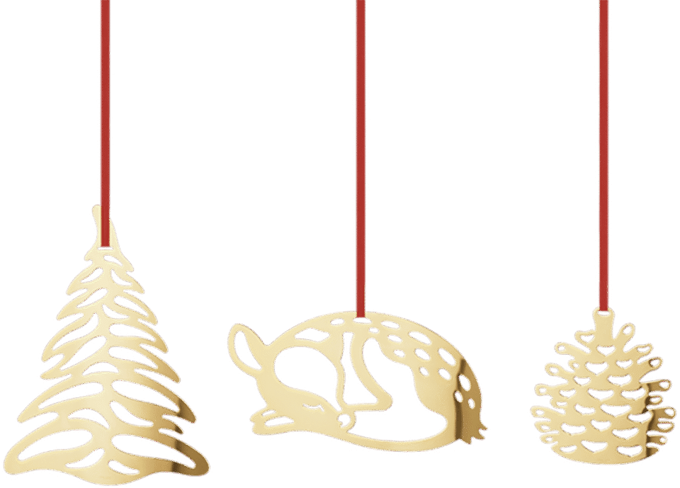 A special 2023 entry to the yearly Christmas Collectibles series, these large ornaments will not go unnoticed. Depicting typical elements of a wintery forest, including a fir tree, a sleeping deer and a pine nut, the 18kt gold-plated decorations can hang by a window or anywhere in the home to celebrate the most wonderful time of the year. Designer: Sanne Lund Traberg
