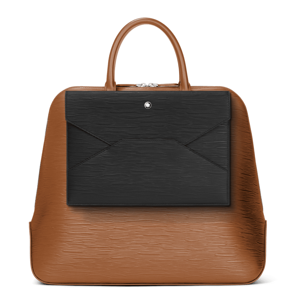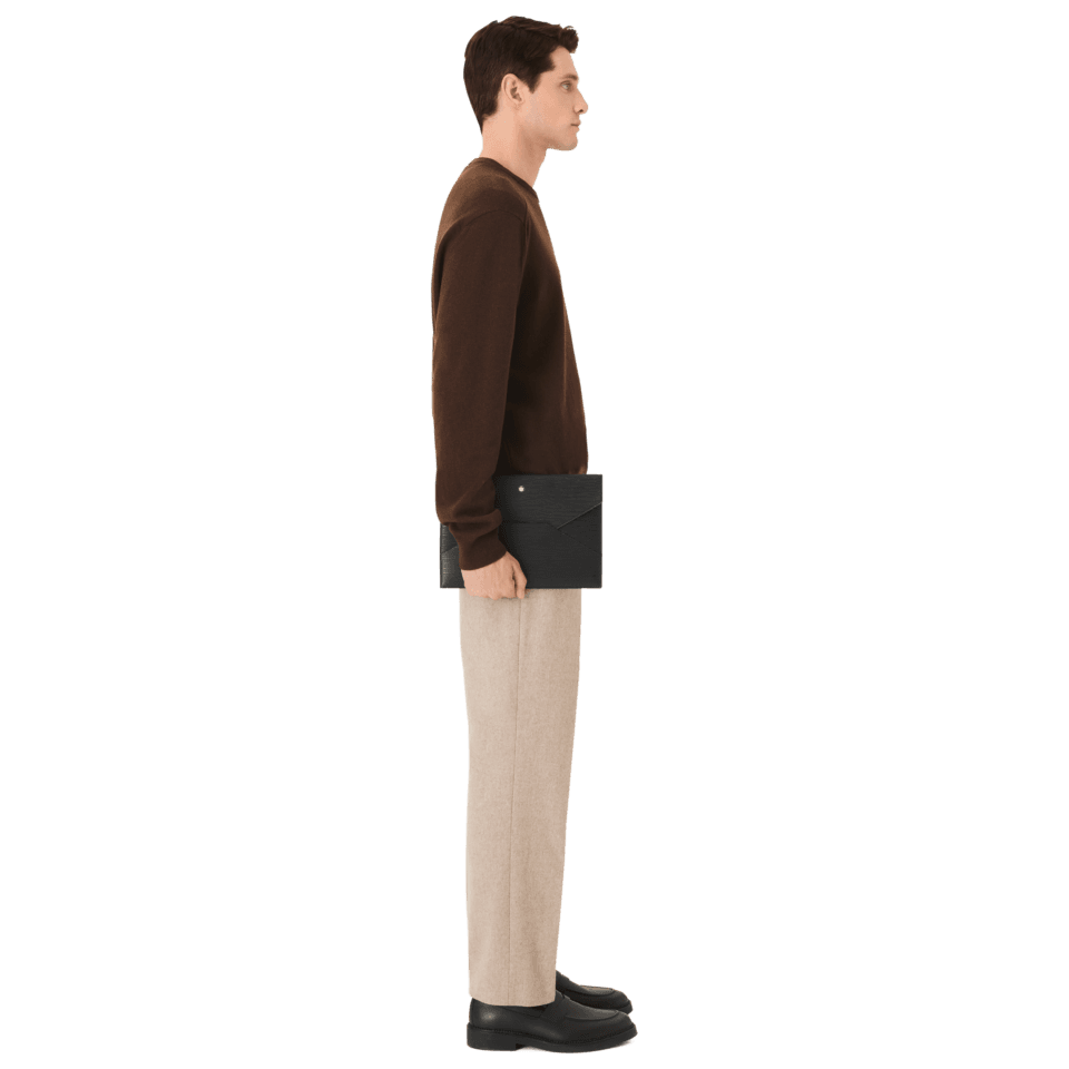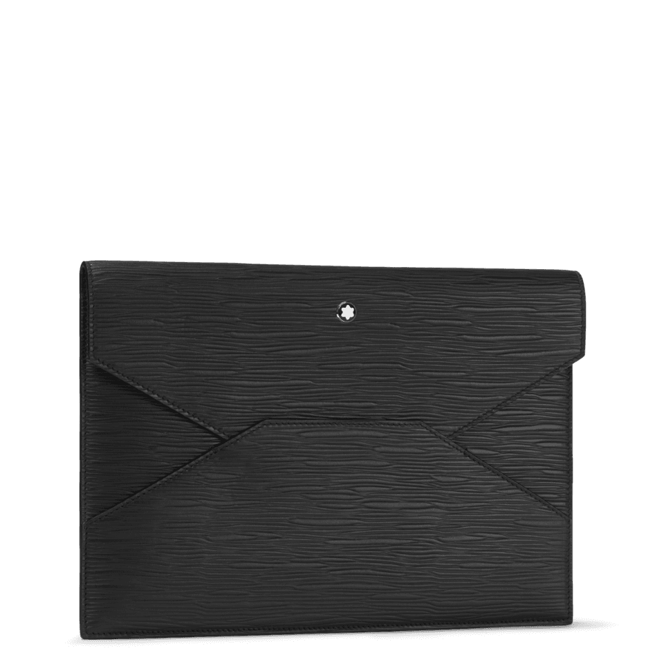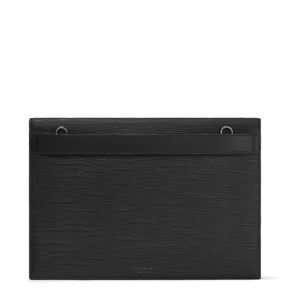 Inspired by the world of writing, this envelope-shaped pouch bag is a stylish companion to wherever your day takes you. Textured in high-quality leather, its modular design features a side band on the back that allows the pouch to be attached to larger bags, such as document cases and totes. The Montblanc emblem details the front flap in a new larger size.