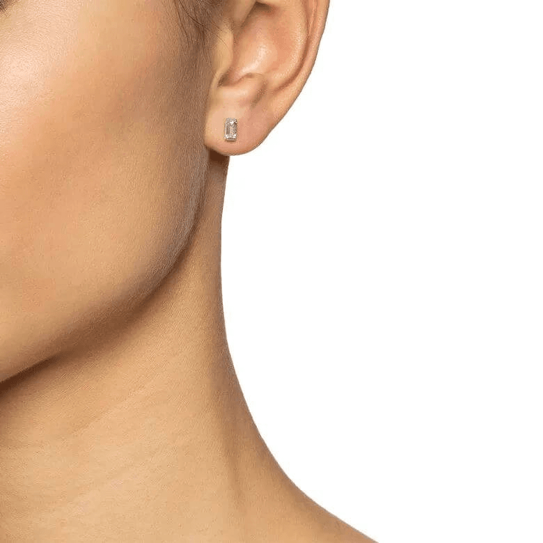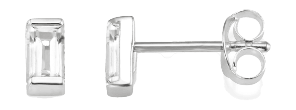 Studs with vintage look in rhodium plated recycled sterling silver and baguette cut crystal quartz.