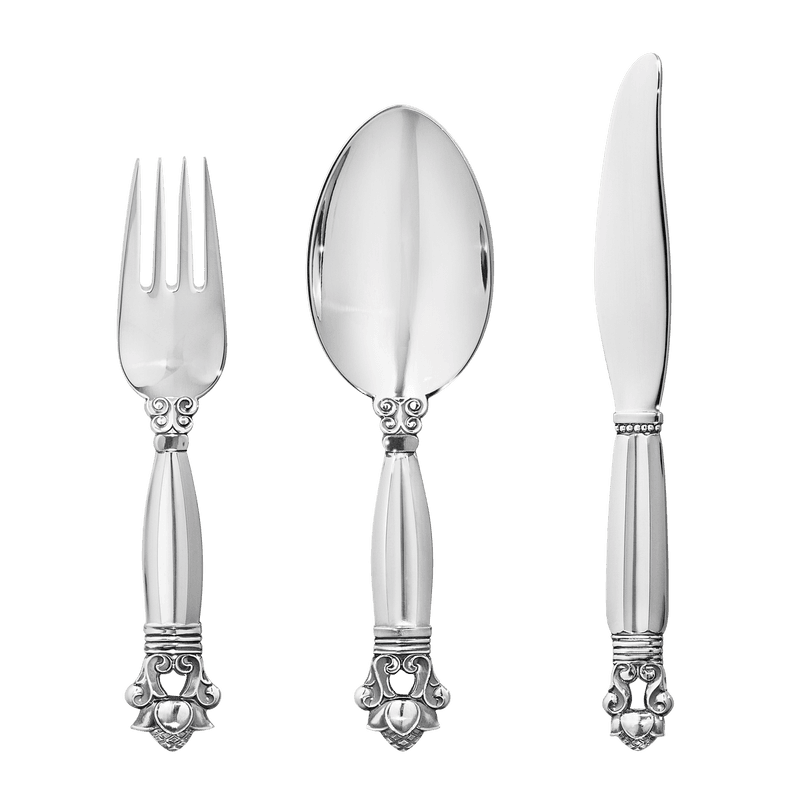 Designed in 1915 by Johan Rohde, the Acorn sterling silverware pattern represents the early foundation of Georg Jensen’s organic and timeless design language. In contrast to the Art Nouveau style of the early 1900s, Acorn’s design captures a classic, understated style where decoration is used to emphasise the form and shape. Regarded as both a sumptuous and noble pattern, Acorn at one time had 220 individual pieces. Today’s range totals 76 pieces and remains one of Georg Jensen’s most exclusive silverware patterns.