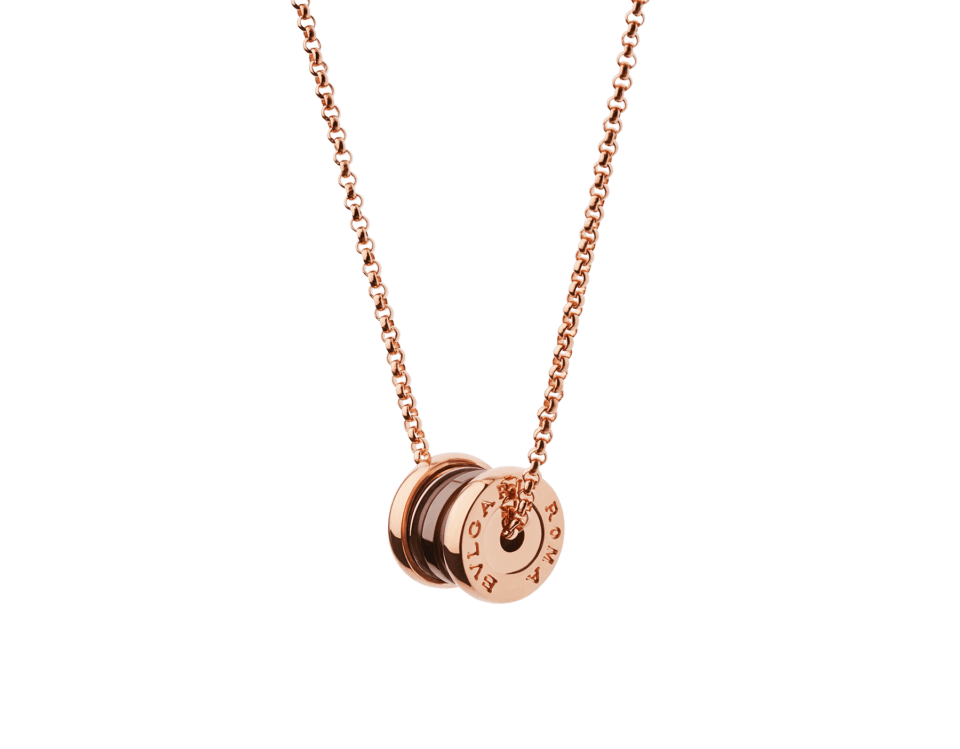 B.zero1 pendant in 18 kt rose gold and cermet.