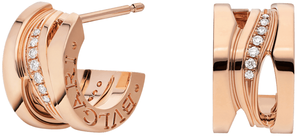 B.zero1 Design Legend 18 kt rose gold earrings with pavé diamonds.