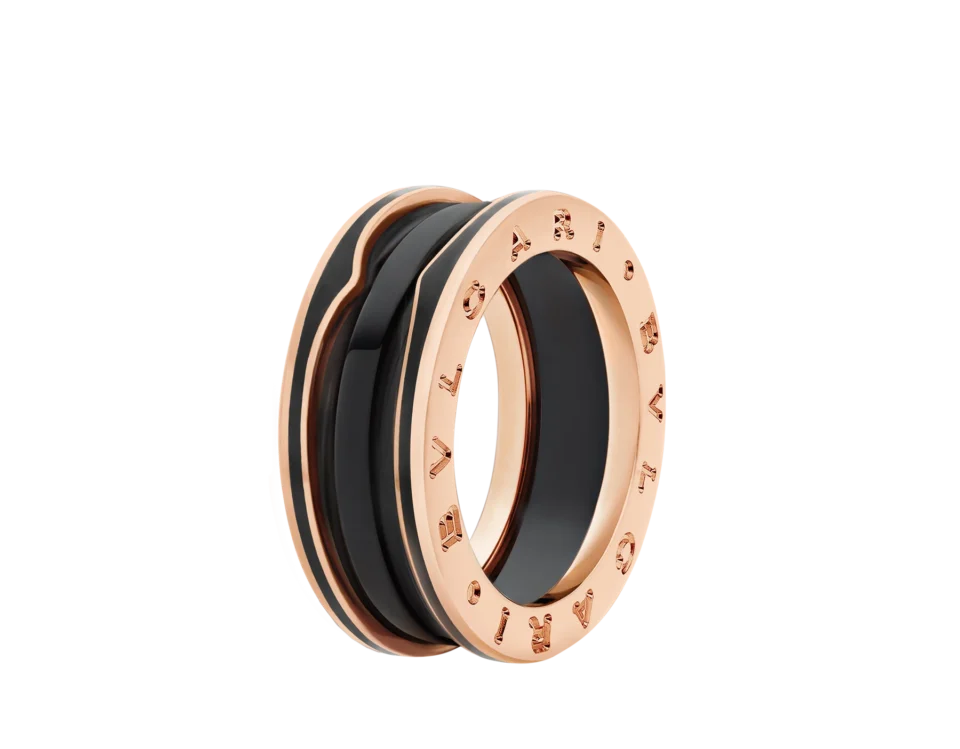 B.zero1 two-band ring in 18 kt rose gold with black ceramic.