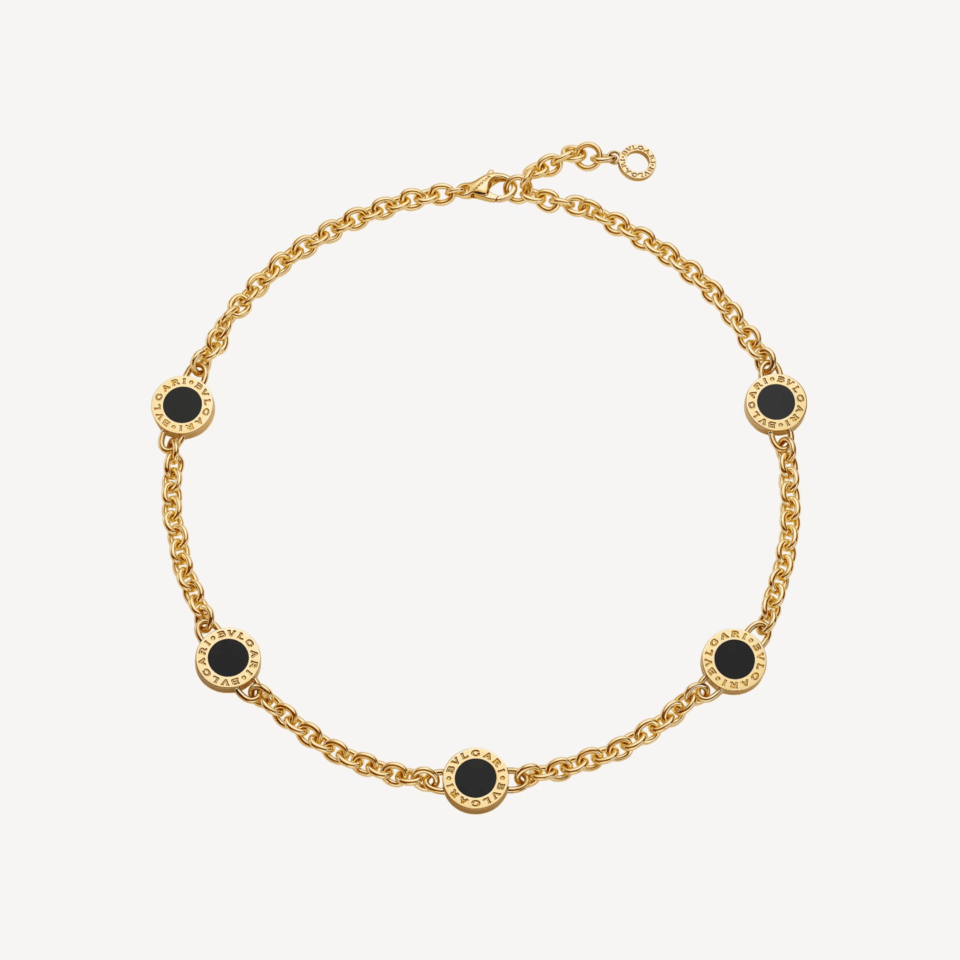 Bvlgari Bvlgari necklace in 18 kt yellow gold with mother-of-pearl and onyx inserts.