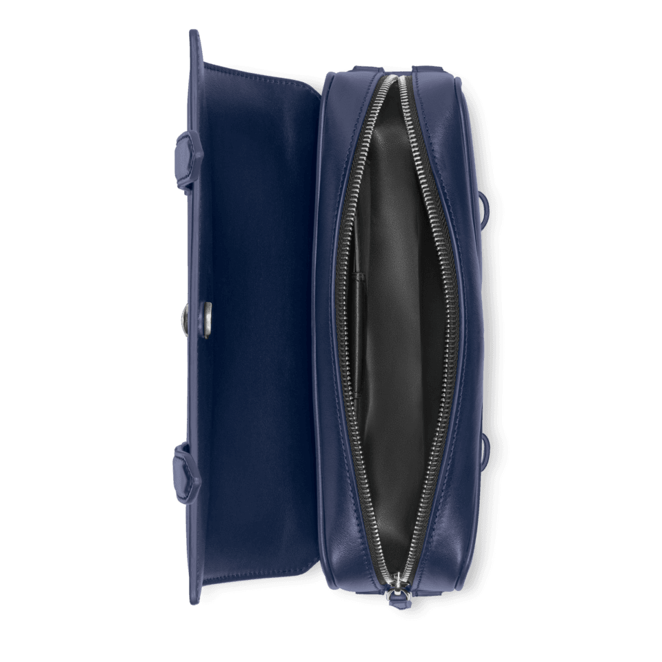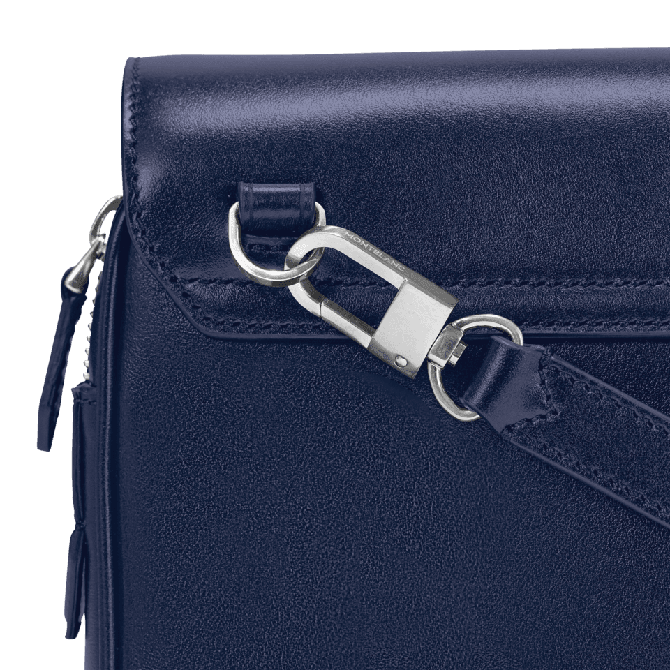 Inspired by the writing culture, the Meisterstück messenger is stylish and easy-to-wear companion for everyday life. Crafted from a new deep shine Ink Blue leather, all its details speak the language of the nib: stitching, zip puller recall the shape of the nib, the essence of Montblanc. A bigger version of the logo lights up the bag. The removable leather shoulder strap delivers carrying comfort, while the satellite system allows customise it and style it in a variety of ways based on your needs. Please note that this product contains magnets. Before using it, please consult the magnet section in the Service Guide leaflet accompanying the product or the Customer Service section on the Montblanc website. If you have any concerns, please consult your health care professional.