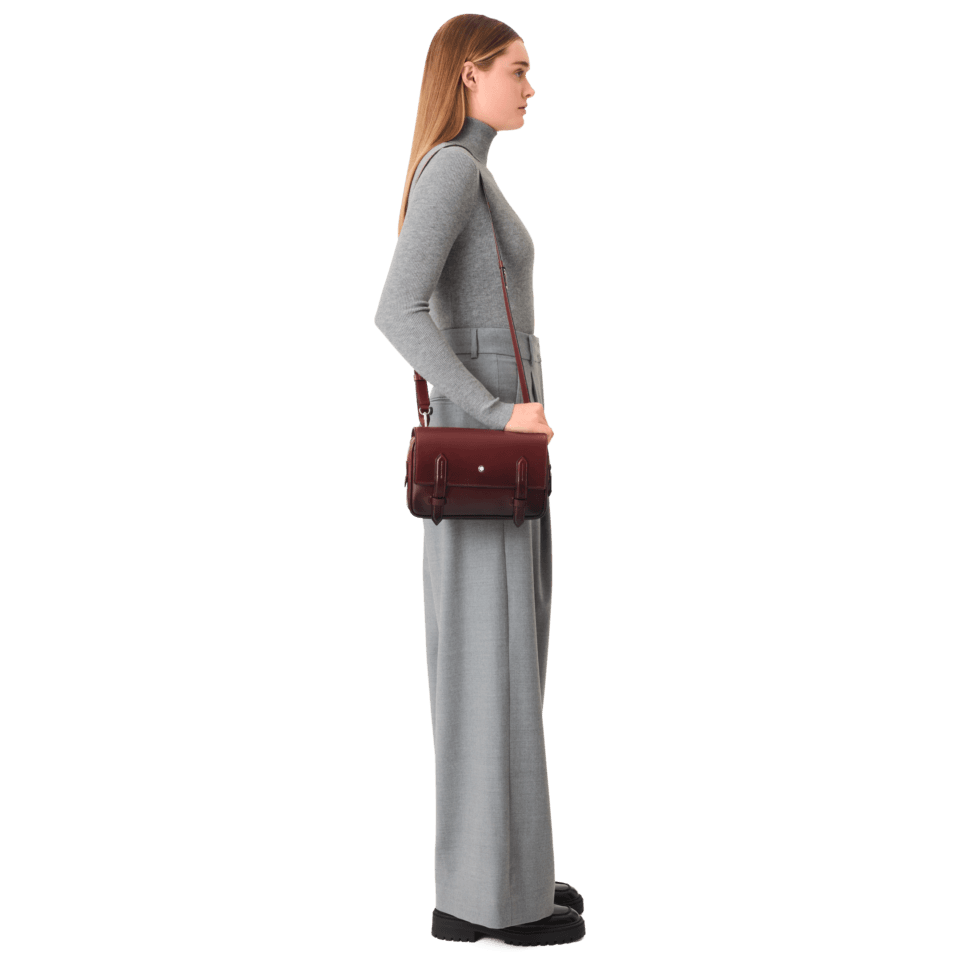 Crafted in a burgundy leather with a manually applied sfumato effect, the Meisterstück messenger is a stylish and easy-to-wear companion for everyday life. Inspired by Montblanc´s writing heritage, all its details speak the language of the nib. Under the flap, a main zipped compartment offers an open pocket and enough room for your daily essentials. A removable leather shoulder strap delivers carrying comfort and different styling options. Please note that this product contains magnets. Before using it, please consult the magnet section in the Service Guide leaflet accompanying the product or the Customer Service section on the Montblanc website. If you have any concerns, please consult your health care professional.