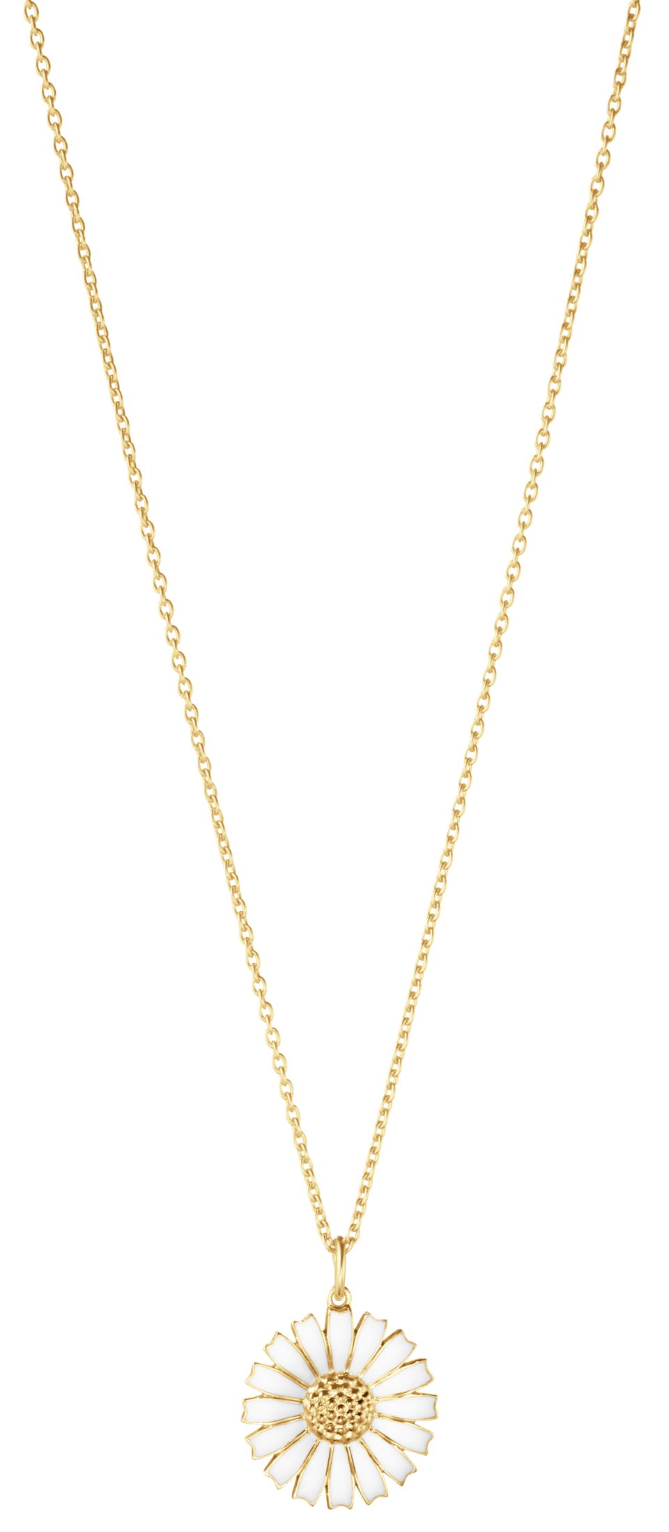 This Daisy pendant, with soft white petals and detailing in 18kt gold, captures the lightness of spring blooms. Set on a fine 18kt gold chain, it makes for a playful addition to any jewellery collection.