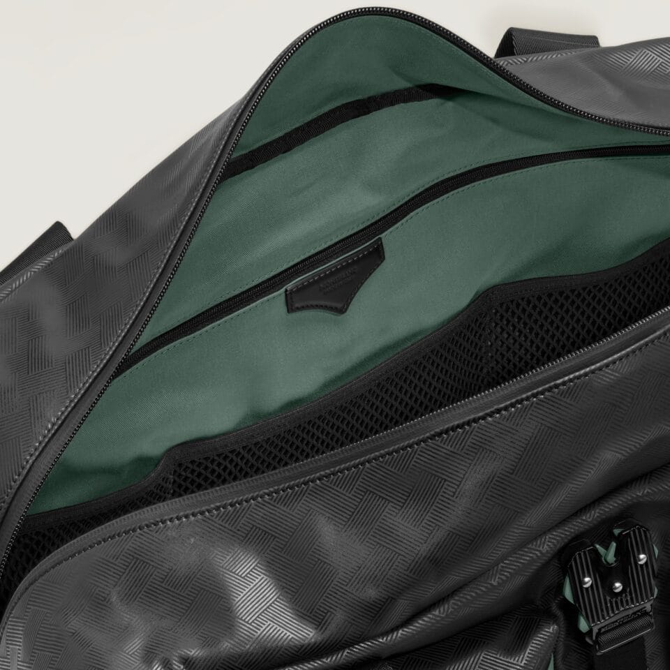 Our latest collaboration with football legend Zinedine Zidane brings you a capsule collection of travel essentials, honouring his personal history and legacy. Inspired by Zidane’s iconic number 5 during his time with Real Madrid, this collection reimagines Montblanc designs in lightweight constructions, offering five stylish travel companions. The new duffle bag, crafted in a combination of black leather and sleek fabric, features the distinctive Extreme 3.0 motif all across. Roomy and stylish, the duffle comes with a spacious main compartment, two front zipped pockets adorned with Pewter-coloured details, and a rear zipped pocket for easy access to smaller belongings. Inside, you’ll find a large zipped pocket, three open pockets, a pen loop and a small zipped pocket to keep your items organised. The top handle fits comfortably in your hand, while the adjustable and detachable strap offers comfortable shoulder wear.