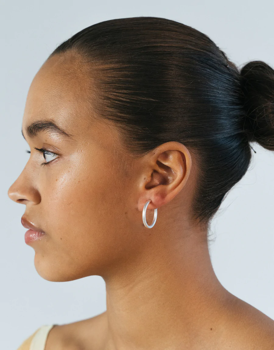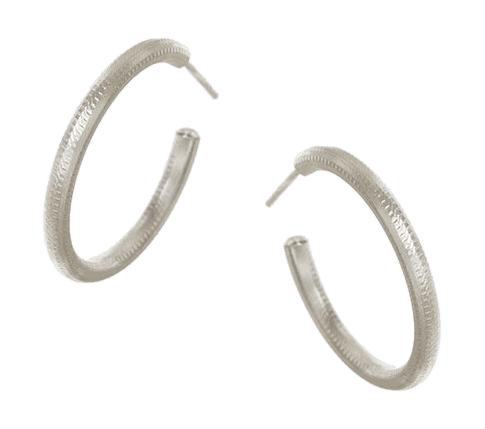 The Esme earrings, created by hand, come with a rough yet smooth surface characteristic of Dulong Fine Jewelry. They come in three different sizes; the size shown here is elegant on its own and even more glamourous with diamonds or pendants. Pair with other jewelry from this collection for a versatile and beautiful look or mix with jewelry across collections for a personal and stunning look.