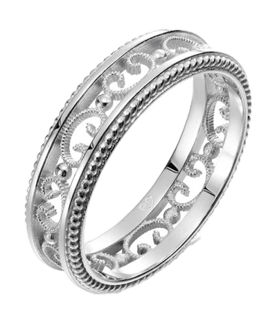 Golden rings have been gifted and worn as a symbol of eternal love for centuries. Rings with skillfully made lace-like filigree patterns were popular amongst the Swedish ruling class in the 18th century. Some of those rings found their way to the prosperous coastal cities of Finland as, at the time, the country was a part of the Kingdom of Sweden. These rings have been used as a model for many pieces of jewelry in the Kalevala Koru collection since the 1960s. Their timeless beauty stirs deep emotions from generation to generation. Of even width and thickness, the narrow Filigree ring is easy to combine with other Kalevala Love rings. The symbol of the Kalevala Love collection, a heart based on a Viking Age motif, is engraved on the inside of the shank.