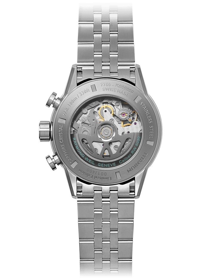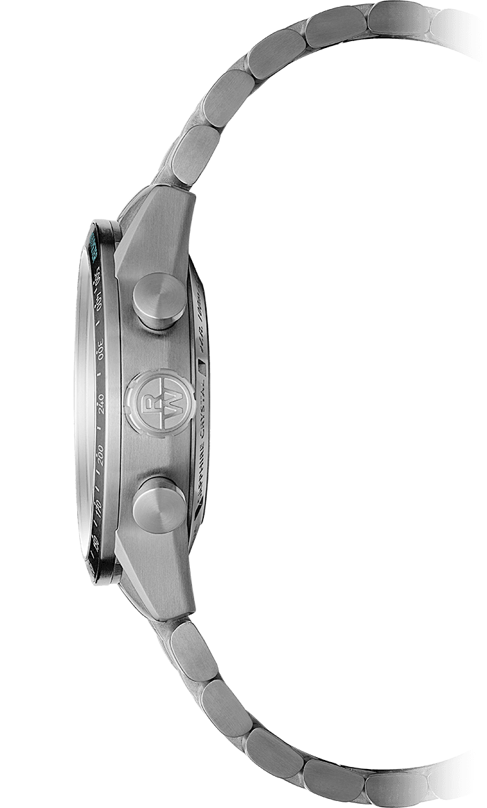 The movement, the Calibre RW5030, is visible via the exhibition case back and has been fitted with a W-shaped skeleton oscillating weight, a reference to the founder’s surname. The Calibre RW5030 possesses a power reserve of 56 hours. This timepiece comes on a titanium bracelet and double push-security clasp.