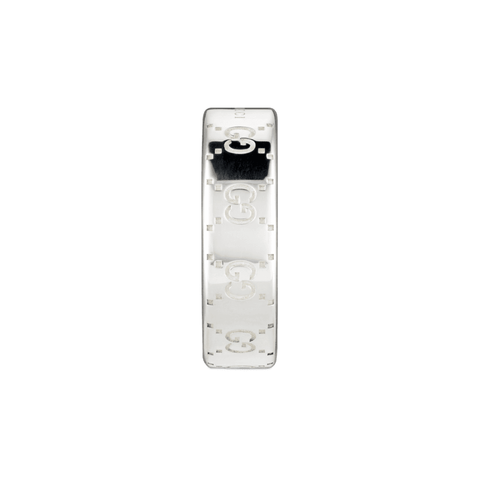 The Gucci Silver Signature Ring Thick Band YBC814720001 is a sterling silver ring featuring the engraved GG motif and a dotted design for a modern yet elegant look. Its wide band is comfortable for everyday or special-occasion wear, and a special coating helps reduce oxidation to maintain its shine. Durable and gemstone-free, the ring highlights Gucci’s craftsmanship and comes in a stylish branded box, making it a versatile and sophisticated accessory.