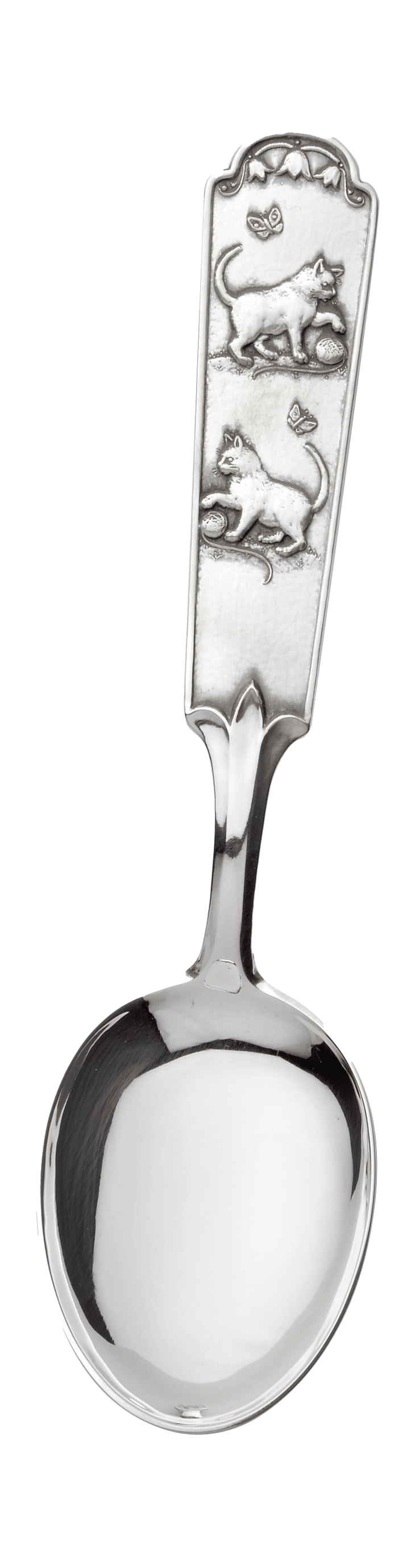 The christening spoon is regarded simply as a gift item, although the original purpose of the spoon was related to the benefits of using silver. According to the tradition, silver items protect their users from disease and illness. The belief has its basis, as the antibacterial properties of silver are known also in the modern times. Silver is a safe material for children. All the spoons are shaped so that it is easy for the child to grab them.
