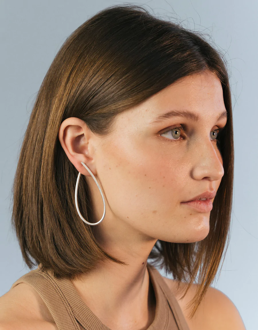 The iconic Kharisma earrings from Dulong Fine Jewelry are timeless and glamorous. The beautiful curve is elegant in its simplicity, the rough yet smooth surface plays with the light and the vast collection of pendants allows you to create a personal look. The mega size is beautiful statement piece and perfect with pendants for a night out. Note that the left earring is different from the right and must be placed so the curve points away from the face. Pair with other jewelry from this collection for a versatile and beautiful look or mix with jewelry across collections for a personal and stunning look.