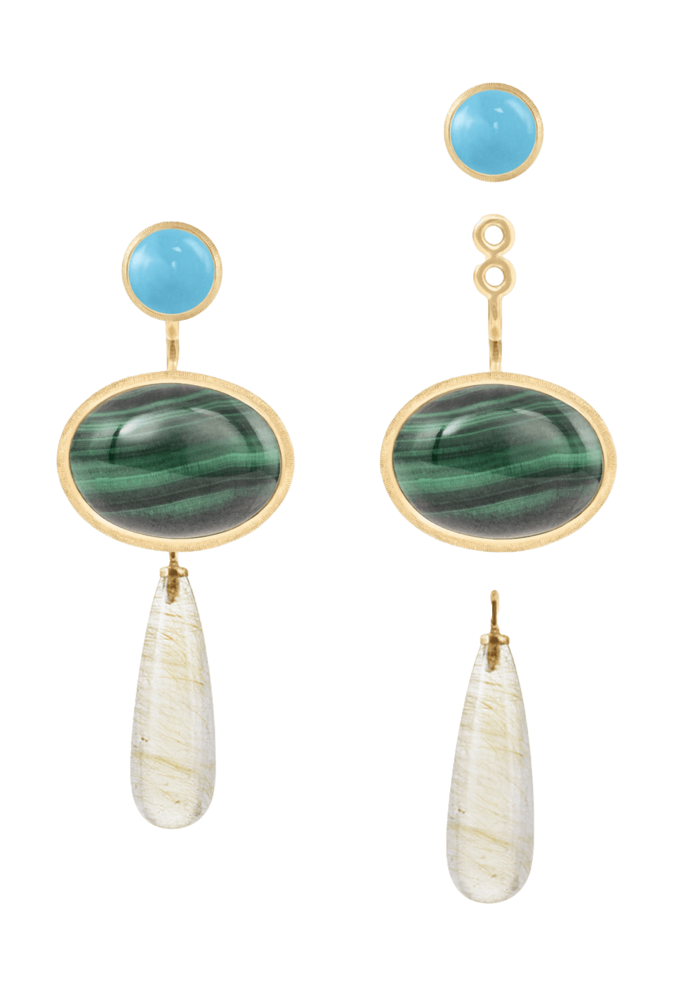 Lotus earrings with turquoise. Earrings are made out of 750 yellow gold. Pendants sold separately.