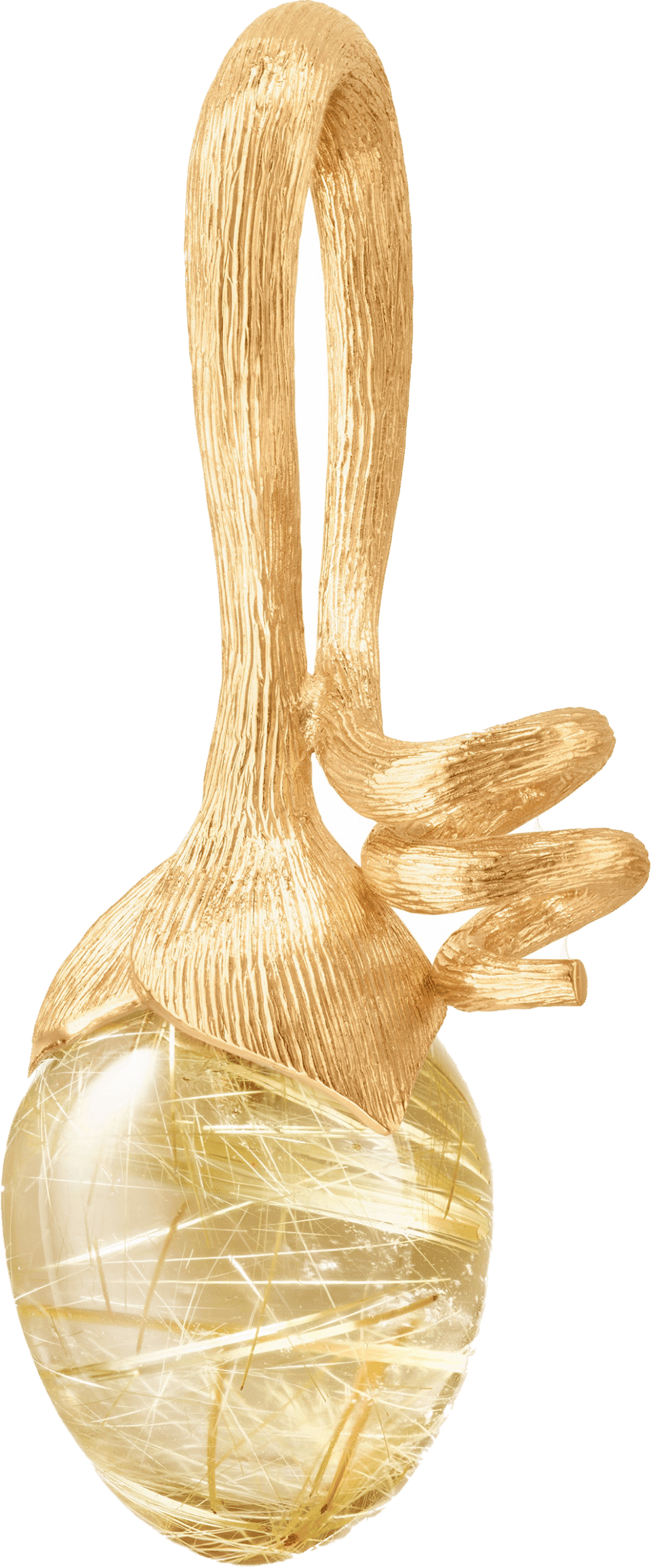 Pendant Sprout Lotus 18 karat yellow gold rutile quartz drop