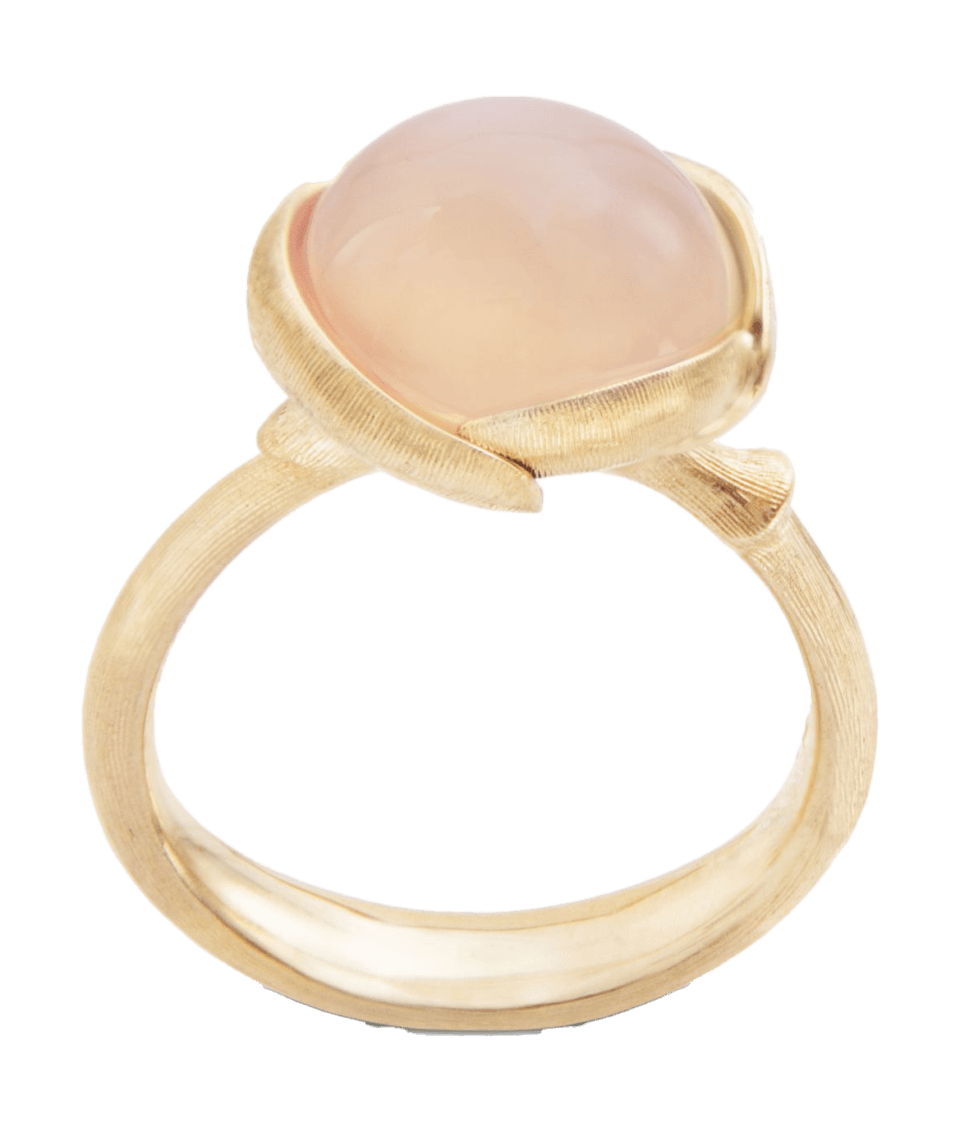 Ring small Lotus 18 karat yellow gold blush moon stone cabochon