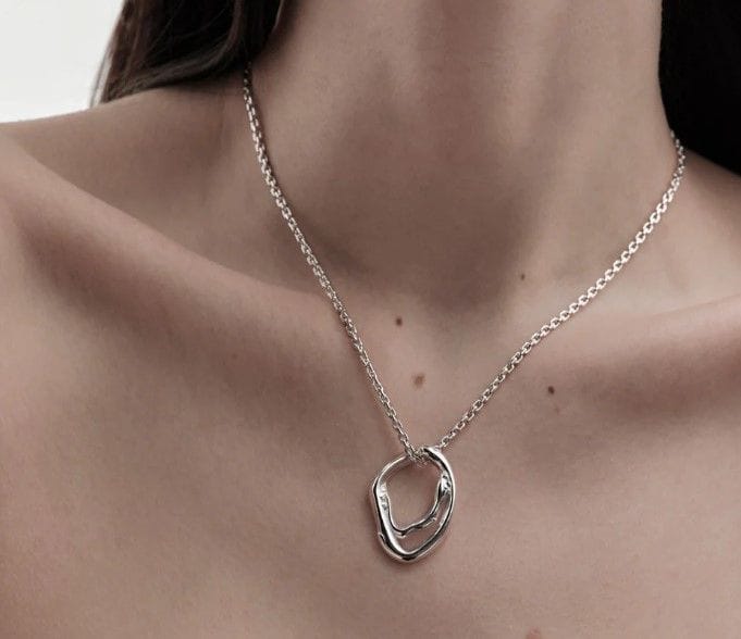 The sculptural Männyt (Finnish for pines) pendant is made of fully recycled silver. The pendant has an organic, softly undulating shape. The interplay between the polished silver surface and rough details creates an appealing tension in the piece. The reverse side of the pendant is hollow. There is no bail on the pendant. The square anchor chain has an adjustable length of 42/45/50 cm and features a lobster clasp.