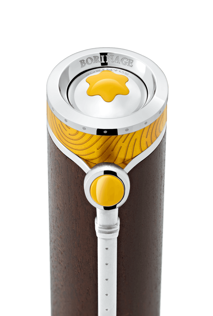 His palette knife inspired the platinum-coated clip, while his sweeping brushwork is immortalised in the yellow lacquer of the cap top. Furthermore, his fondness for pipe smoking, to which he referred in many of his self-portraits, is captured in a subtle detail of the clip: the upper part is shaped like a pipe’s bowl and filled with yellow precious resin. As homage for Vincent’s fascination of traditional Japanese woodblock prints, the overall shape is inspired by a Japanese woodcutting knife while the cap is made from wood.