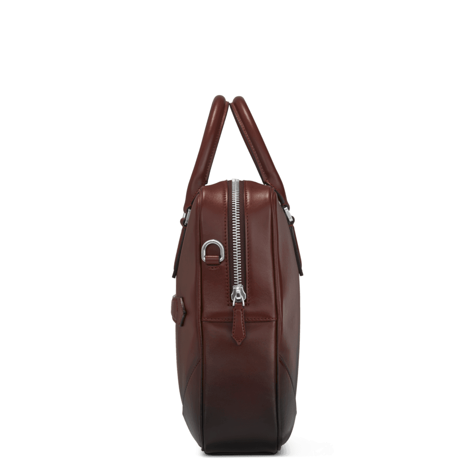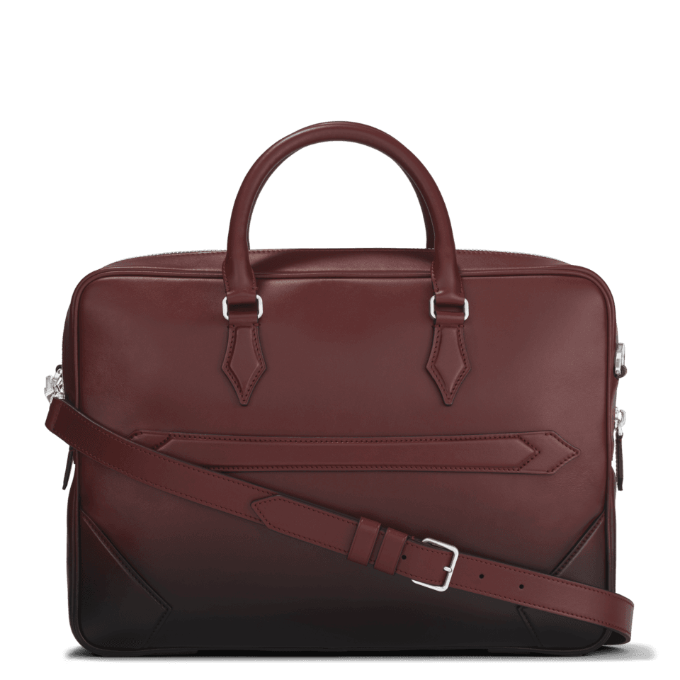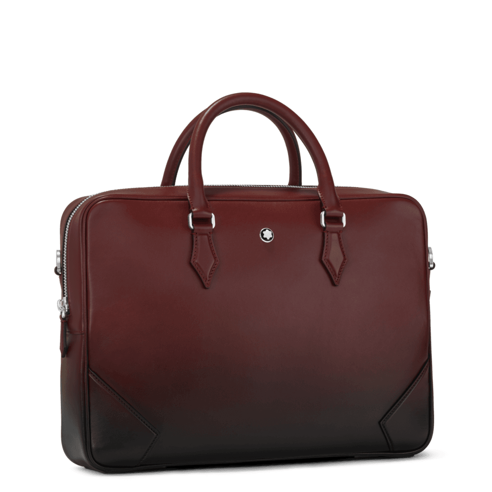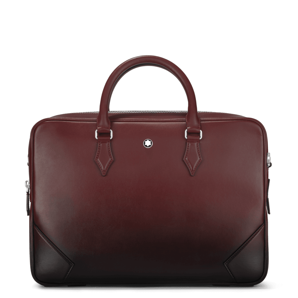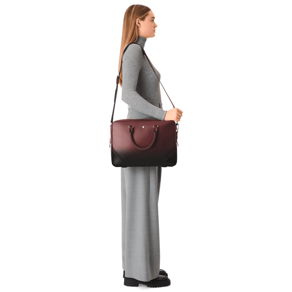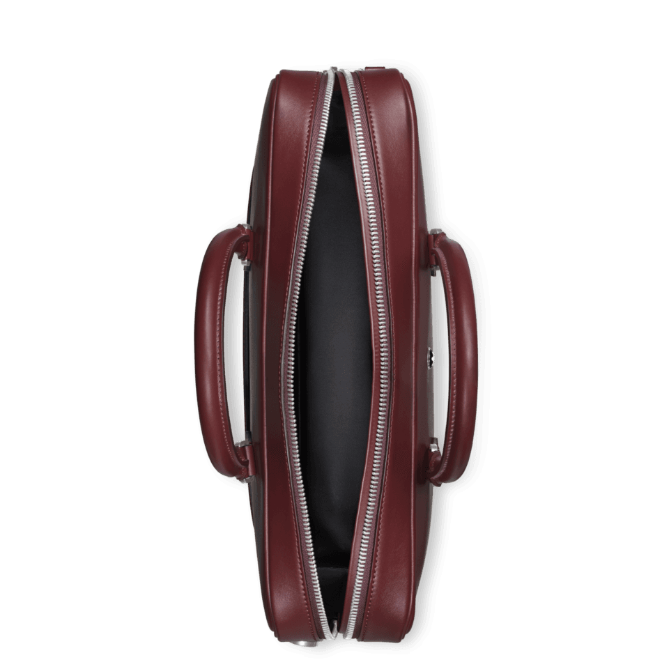 An elegant companion for business trips, this Meisterstück document case is an outstanding examplar of Montblanc´s dedication to craftsmanship. The luxurious feel of its burgundy leather is enhanced by the manually applied sfumato effect, while the stitching, zip pullers and handles recall the shape of the nib, the essence of Montblanc. Featuring a bigger version of the logo, the bag offers inside pockets for enhanced praticality. The leather top handles, the removable leather shoulder strap and the satellite system offer multiple carrying option