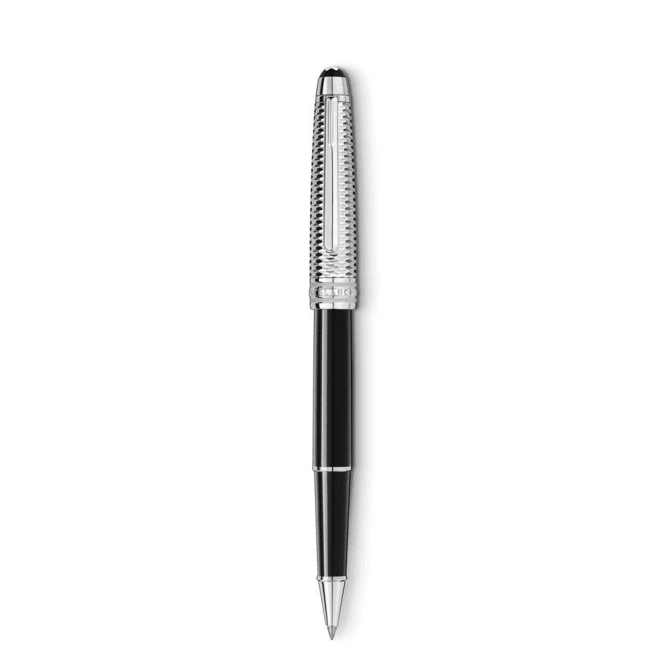The Meisterstück Solitaire Geometric Dimension was born of the desire to unite Montblanc’s classic design with unique materials. This writing instrument made of black precious resin, engraved with its three-dimensional geometric pattern cap with optical effect in a sophisticated platinum tone, a platinum-coated clip and three platinum-coated rings embossed with the Montblanc brand name. Finished with the Montblanc emblem, it appeals to one’s individuality.