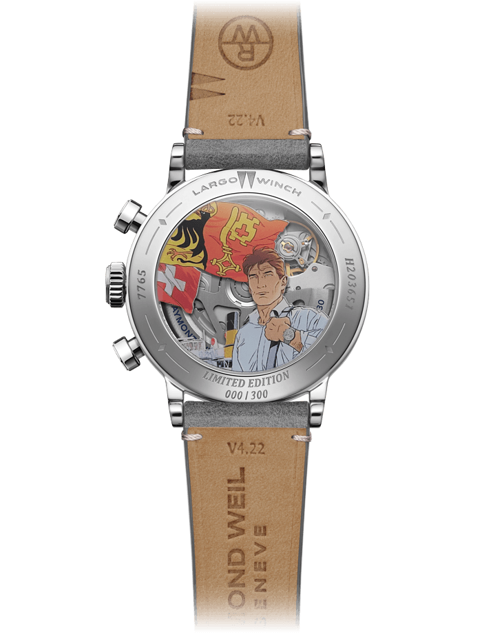 After music and contemporary art, RAYMOND WEIL opens its brand territory to the world of arts and culture. The RAYMOND WEIL x Largo Winch Limited Edition watch transcends traditional watchmaking boundaries to immerse itself in the 9th Art, that of graphic novels. In fusing classic Swiss elegance with the adventurous spirit of modern times, this new millesime Tri-compax Chronograph is a tribute to Largo Winch’s inspiring determination and courage. Every detail of this watch reflects RAYMOND WEIL’s commitment to creating exceptional timepieces while celebrating Philippe Francq’s, the Belgian illustrator of Largo Winch, artistry.