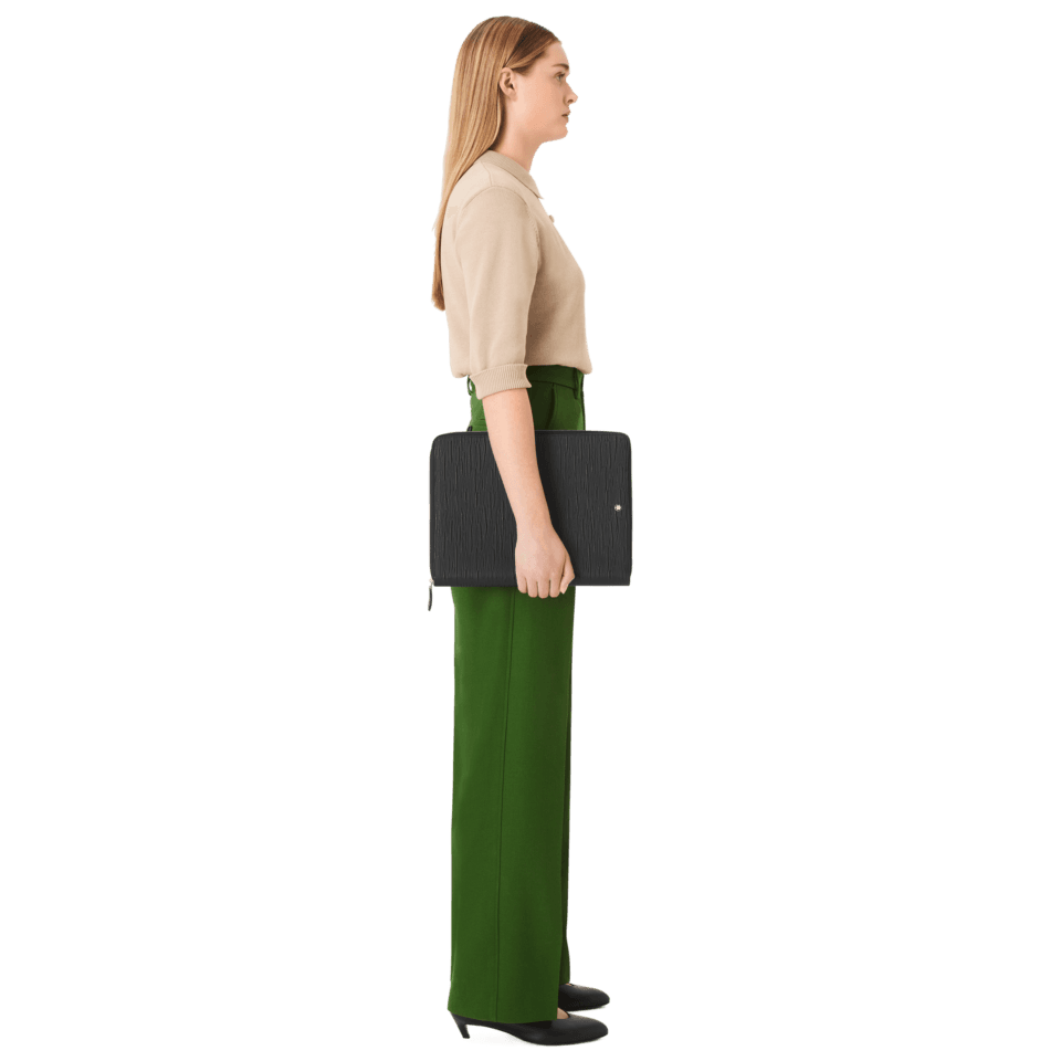 Keep your work notes safe in style with this stylish notepad holder. A textured printed leather complements a clean-lined silhouette, lending a luxurious allure to professional essentials. The zipped closure allows for quick and easy access to the notepad secured inside.