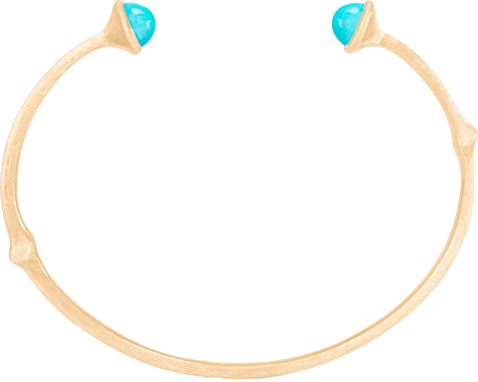 Bangle Nature 18 karat yellow gold with turquoise cabochon, satinized. Designer Charlotte Lynggaard is fond of the bohemian appearance of open bracelets. Nature bracelets are a tribute to playfulness, and these colourful, slender bracelets are designed to be stacked together or with other petite styles such as Life bracelets and Shooting Stars bracelets.