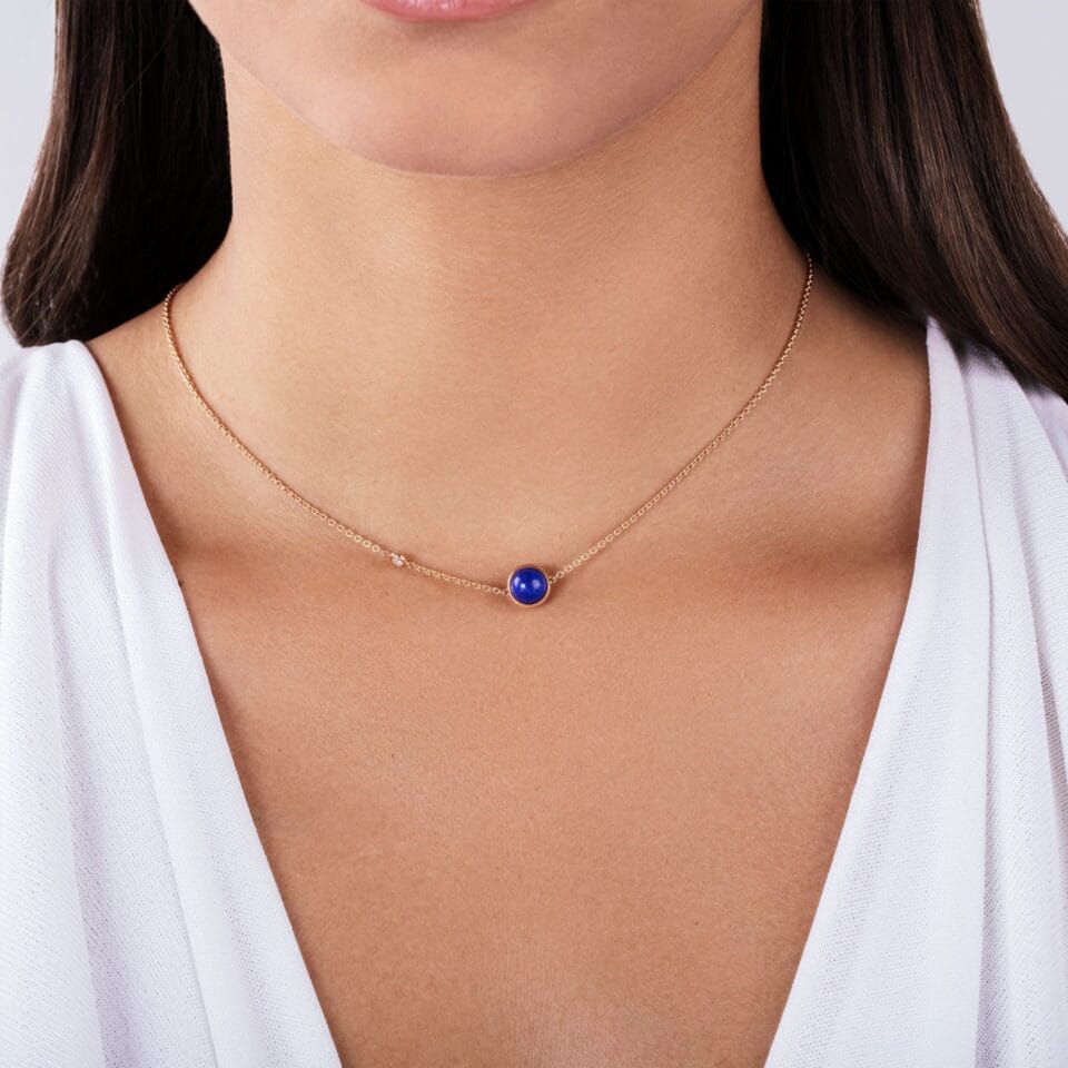 Possession pendant in 18K rose gold set with a brilliant-cut diamond (approx. 0.06 ct) and a lapis lazuli bead.