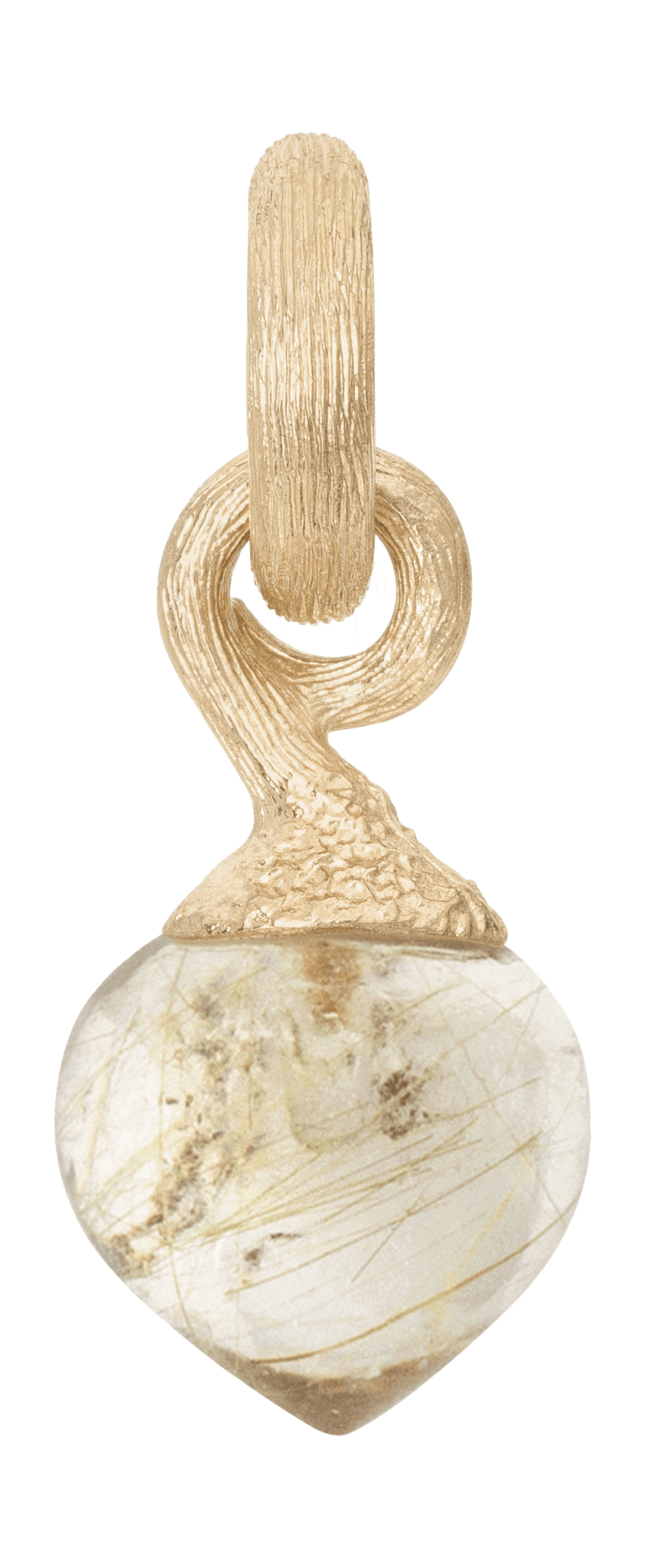 Designed by Charlotte Lynggaard, the Sweet Drops charm is hand-crafted from 18 karat yellow gold with a pointed rutile quartz cabochon. Master goldsmiths create the texture of the gold surfaces using an array of tools and techniques. An invisible clasp lock makes it suitable for use with Ole Lynggaard Copenhagen Love bracelets or colliers, as well as leather and silk bracelets. Part of the Ole Lynggaard Copenhagen Sweet Drops Collection.