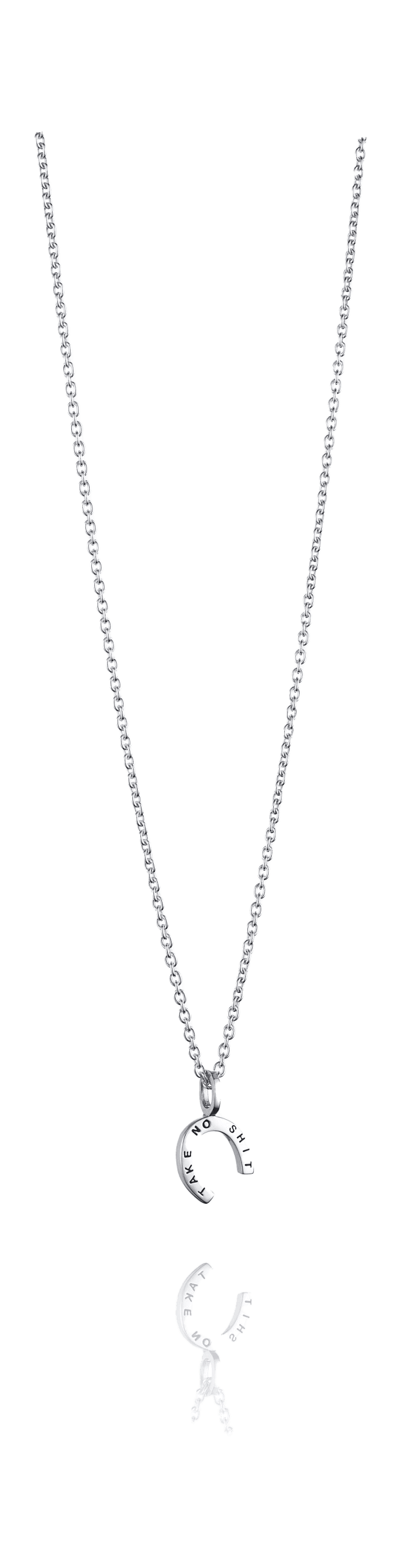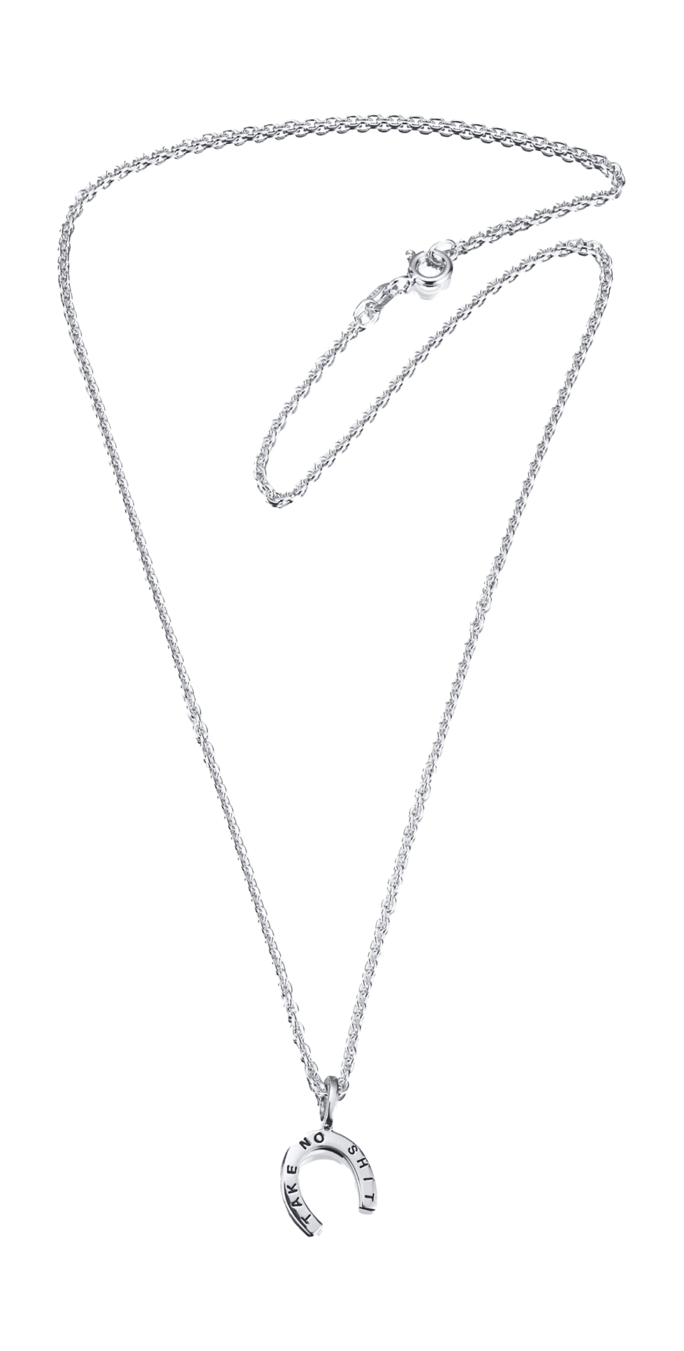 Small pendant shaped as a horseshoe in recycled sterling silver. The pendant is stamped with Take No Shit. The collection is sold in favor of Bris, 100 SEK goes to Bris to support the children’s rights in society.