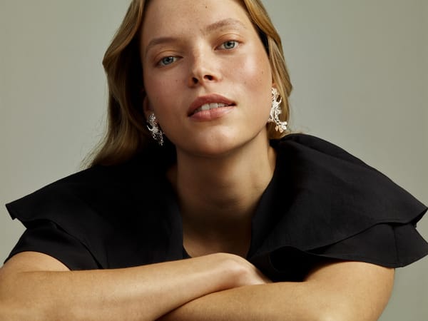 The Tundra earrings are impressive and sculptural, yet leafy and light. Their refined structure and the cool shimmer of silver beckon to come and look closer. You may change the appearance of the earrings by stripping off the dangling lower parts. Stud fastening. The top and bottom of the right earring are marked with a circle for pairing and identification. There is no marking on the left earring. Also available in bronze