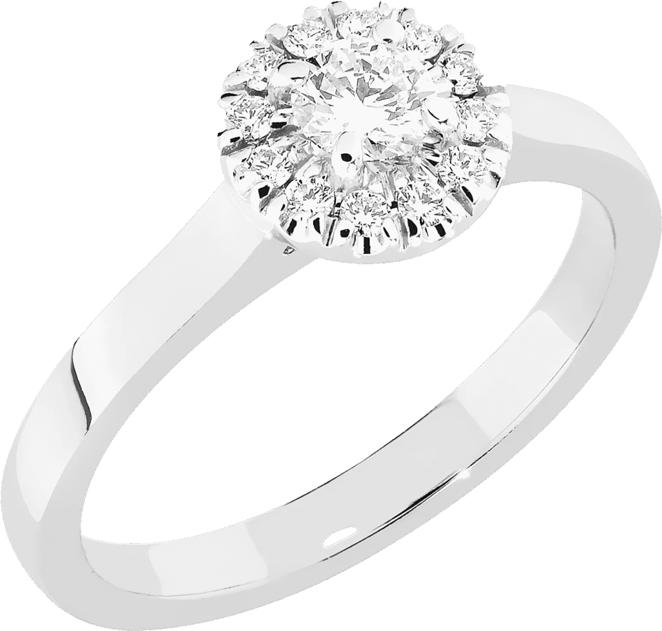 Toivomuslähde V-718w white gold ring with halo diamond decoration.