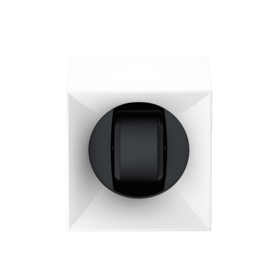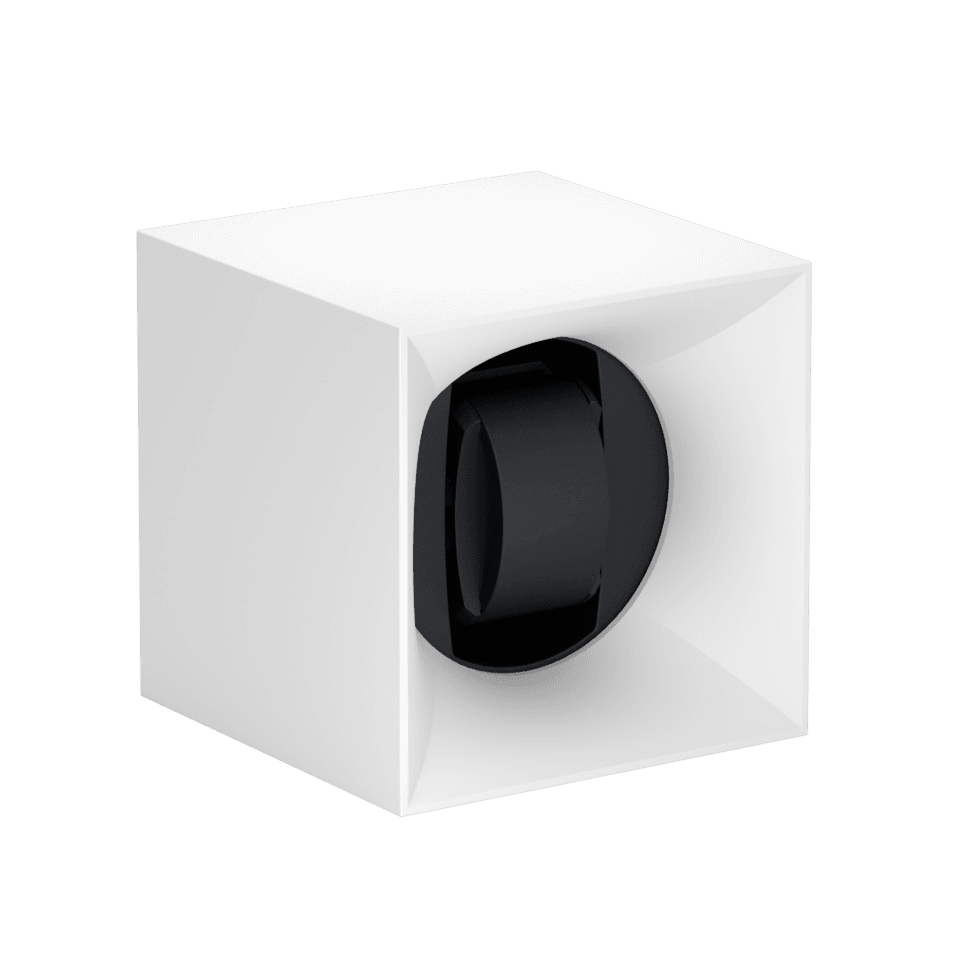 Proud to bear the Swiss Made label, the Startbox White Soft Touch Single Watch Winder is designed to keep your automatic watch moving when you’re not wearing it. With a rotating motor that simulates wrist movements, our winder prevents the mechanism on your watch from jamming. With an understated cube design, this automatic watch winder fits perfectly into any room, making it both functional and aesthetically satisfying.
