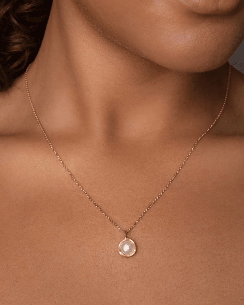 The small Vega Pearl pendant is a delicate tribute to the simple beauty of nature. Handcrafted in 18-carat gold, its organic design frames a radiant freshwater pearl, whose silky surface creates a beautiful contrast with the matte gold. The shape of the pendant creates a subtle yet sophisticated expression that radiates timeless elegance. Perfect to wear on its own or layered with other jewellery, this pendant adds a touch of luxury and natural beauty to any style.