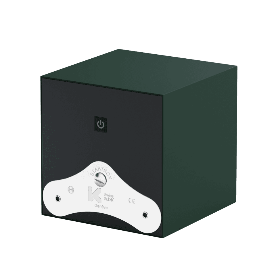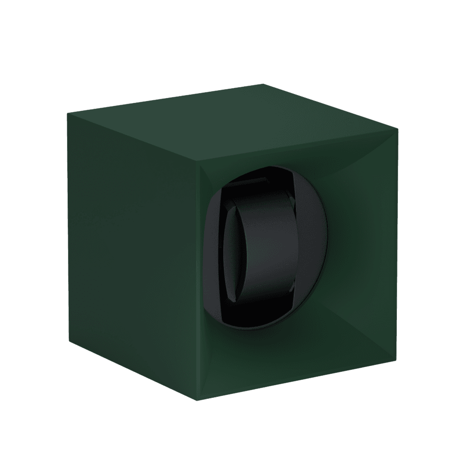 Proud to bear the Swiss Made label, the Startbox Green Soft Touch Single Watch Winder is designed to keep your automatic watch moving when you’re not wearing it. With a rotating motor that simulates wrist movements, our winder prevents the mechanism on your watch from jamming. With an understated cube design, this automatic watch winder fits perfectly into any room, making it both functional and aesthetically satisfying.