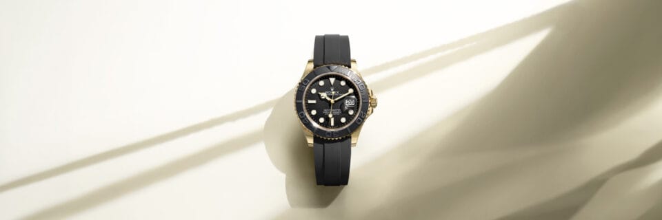 The Yacht-Master’s bidirectional rotatable 60-minute graduated bezel is made entirely from precious metal – Everose gold or platinum – or fitted with a Cerachrom insert in high-tech ceramic, depending on the model. The raised polished numerals and graduations stand out clearly against a matt, sand-blasted background. This functional bezel – which allows the wearer to calculate, for example, the sailing time between two buoys – is also a key component in the model’s distinctive visual identity.
