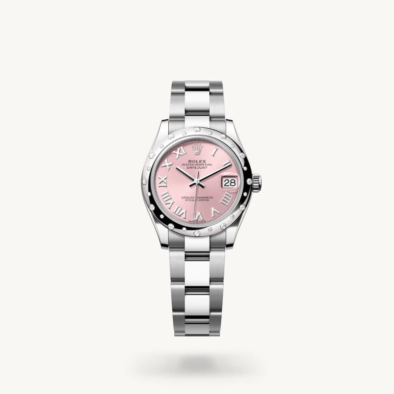 - Model case Oyster, 31 mm, Oystersteel, white gold and diamonds