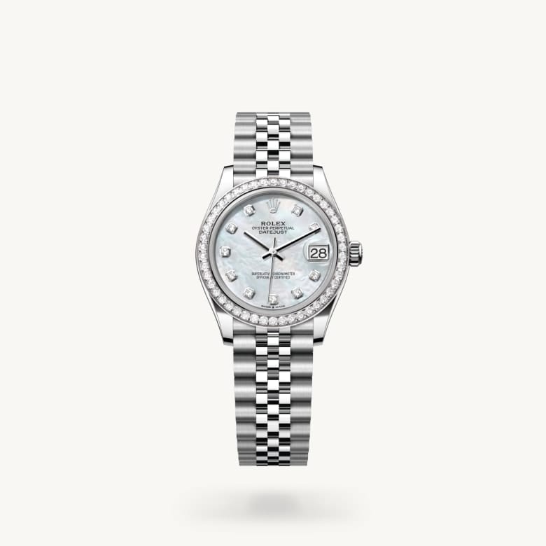 - Model case Oyster, 31 mm, Oystersteel, white gold and diamonds