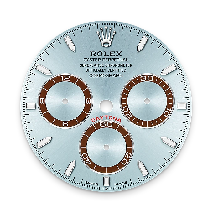 Tämän mallin ruiskupinnoitetuilla laskureilla varustetussa jäänsininen kellotaulussa on 18k kullasta valmistetut koholla olevat tunti-indeksit sekä helppolukuisesta Chromalight-lumeesta valmistetut osoittimet. Näin kuljettajat voivat seurata rata-aikojaan ja taktiikoitaan virheettömästi.