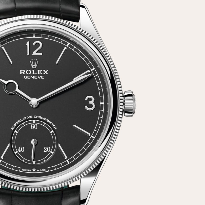 - Tyyppi 39 mm, 18k valkokultaa, kiillotettu pinta