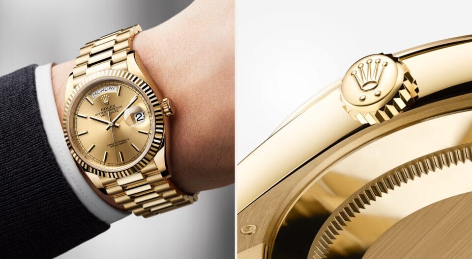 Kun Day-Date lanseerattiin vuonna 1956, se oli merkittävä innovaatio: ensimmäinen kalenterirannekello, jonka kellotaulussa oli paitsi päivämäärä, myös viikonpäivä kokonaan kirjoitettuna kaaren muotoisessa ikkunassa kello 12 kohdalla – sen ajan merkittävä tekninen saavutus. Kello valmistetaan ainoastaan jalometalleista: 18k keltakullasta, valkokullasta, Everose-kullasta tai 950 platinasta. Siinä on ikoninen President-ranneke sekä useita kellotauluvaihtoehtoja, joiden avulla kelloon saa juuri itselle sopivan ilmeen.