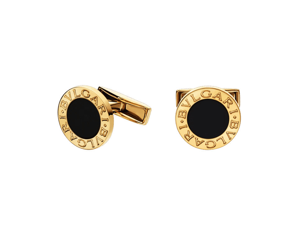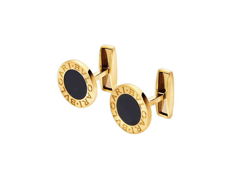 Bvlgari Bvlgari -kalvosinnapit, 18 kt keltaista kultaa, musta onyksi.