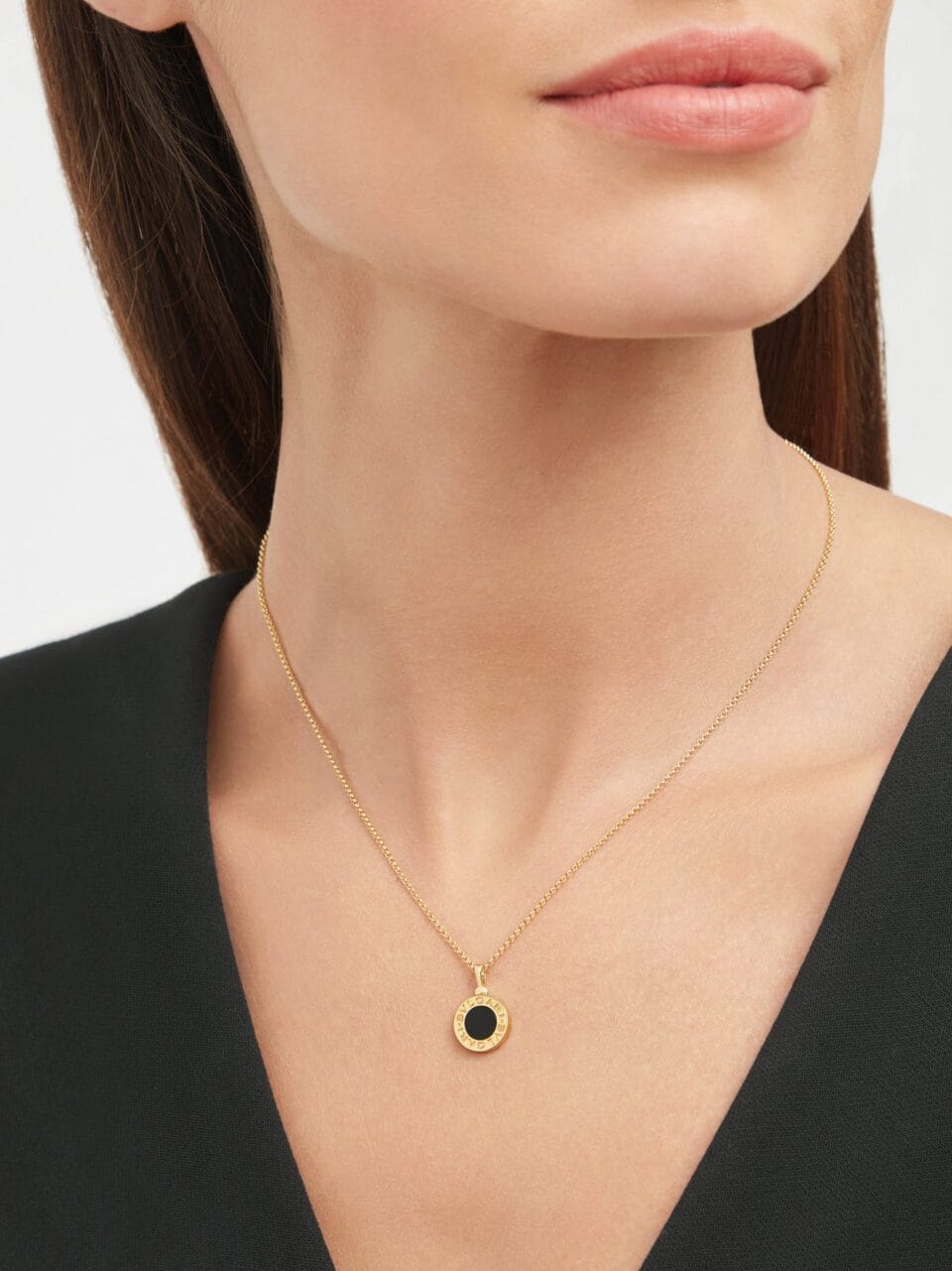 BVLGARI BVLGARI kaulakoru on valmistettu 18K keltakullasta ja sitä koristaa musta onyksi. Pituus 41-43cm.
