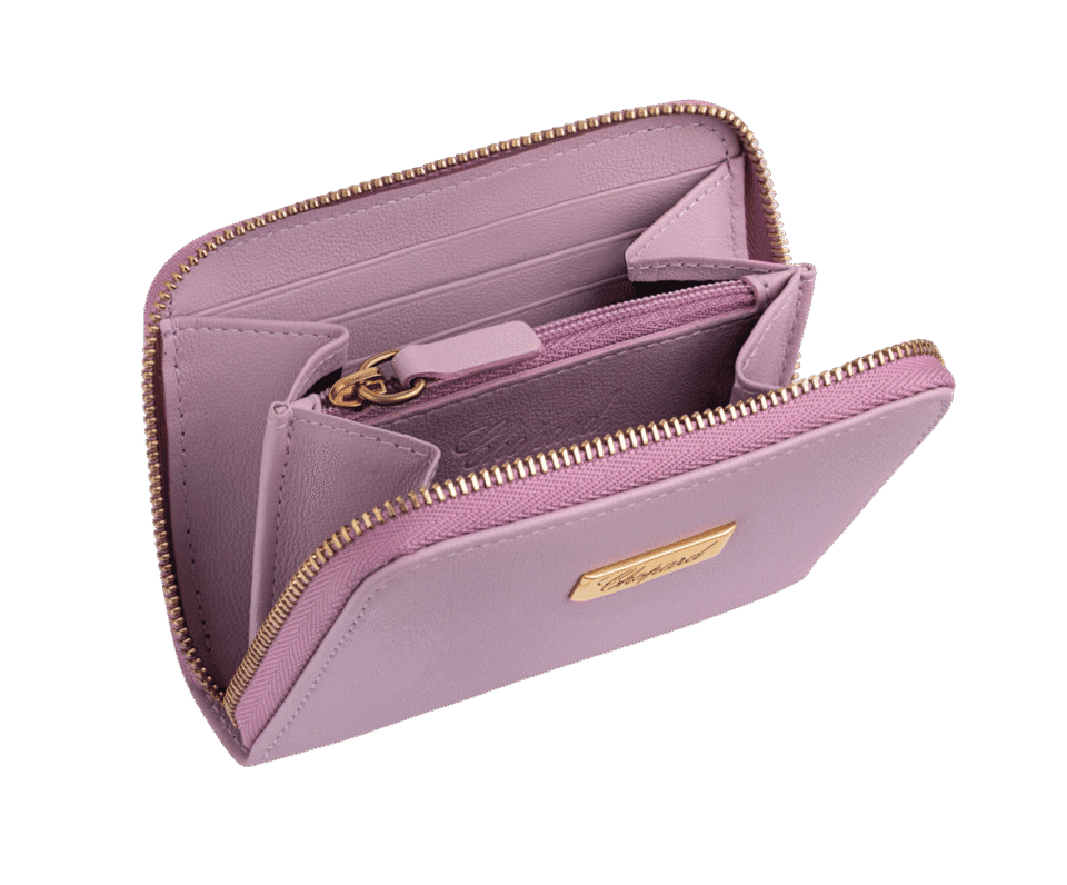 Tästä käytännöllisestä ja tyylikkäästä violetista nahkalompakosta löytyy kuusi kortti taskua, kaksi koteloa seteleille, sekä yksi vetoketjullinen kolikkotasku.