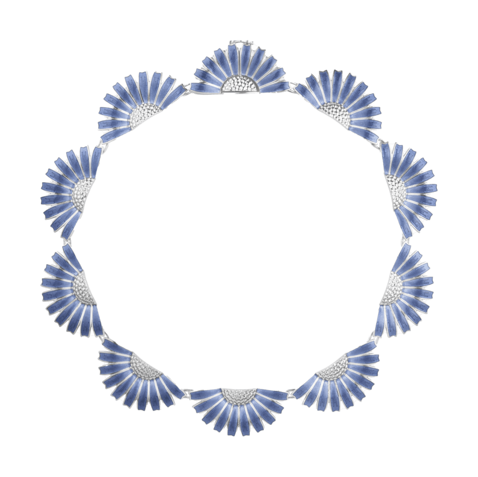 Nöyrän päivänkakkaran viehätys ja optimismi tekevät siitä yhden tunnistetuimmista ja rakastetuimmista kukista. Hienossa hopeassa vangittu kaunis riipus säilyttää päivänkakkaran viattomuuden ja raikkauden, sillä terälehdet tuodaan esiin käsinmaalatulla sinisellä emalilla. Kaulakorun huoleton asenne tarkoittaa, että se sopii yhtä hyvin farkkujen ja t-paidan kanssa kuin viimeistelee ilta asun.