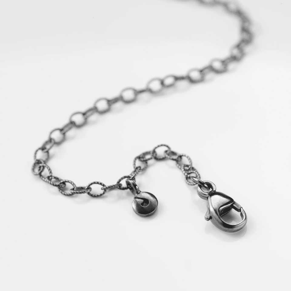 Charlotte Lynggaardin suunnittelema ohut Lotus-ketju on valmistettu hapetetusta hopeasta.