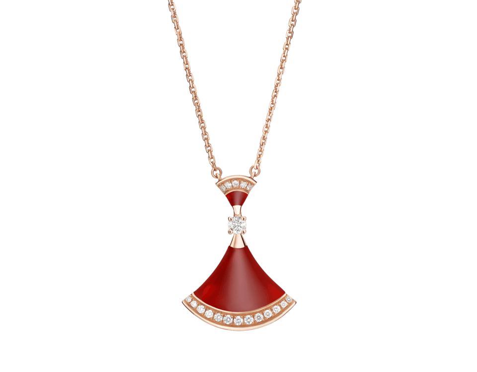 Italialaista eleganssia ilmentävä DIVAS’ DREAM -kaulakoru edustaa legendaarista diivaa hänen salaperäisellä, unohtumattomalla viehätysvoimallaan. Pohjimmiltaan naisellinen ja hienostunut riipuksen viuhkamainen muoto saa inspiraationsa Caracallan roomalaisen kylpylän mosaiikeista, heijastaen Bvlgarin kiinteää sidettä ikuiseen kaupunkiin modernin suunnittelun ja hienostuneiden jalokiviyhdistelmien kautta.