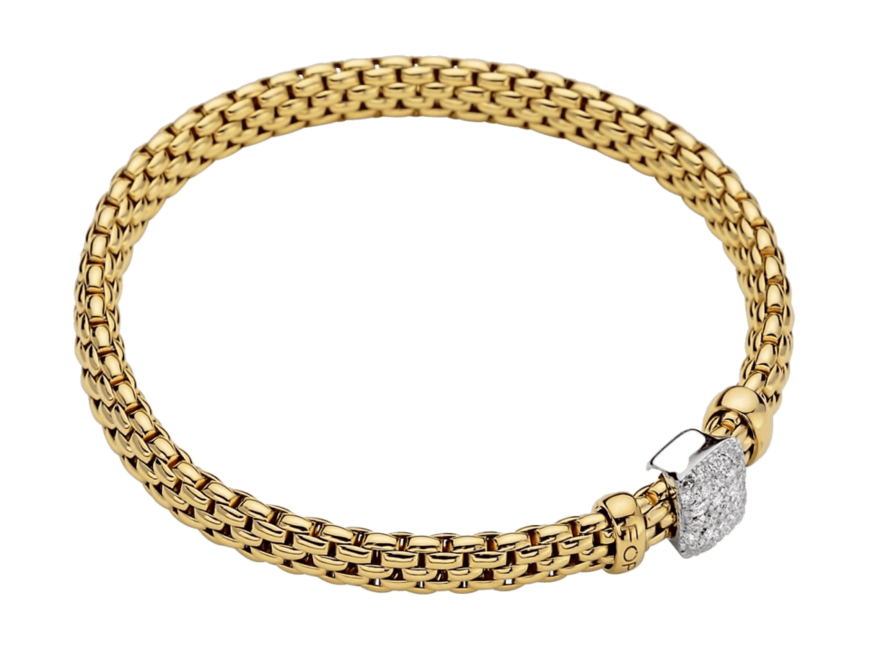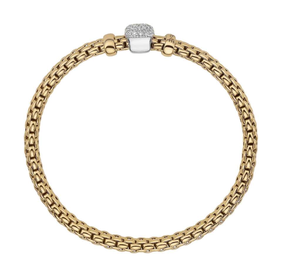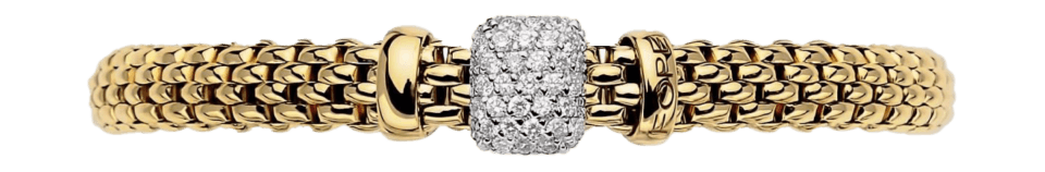 Joustava rannekoru on valmistettu 18K keltakullasta, timantit (0.41ct) on taas istutettu valkokultaan.