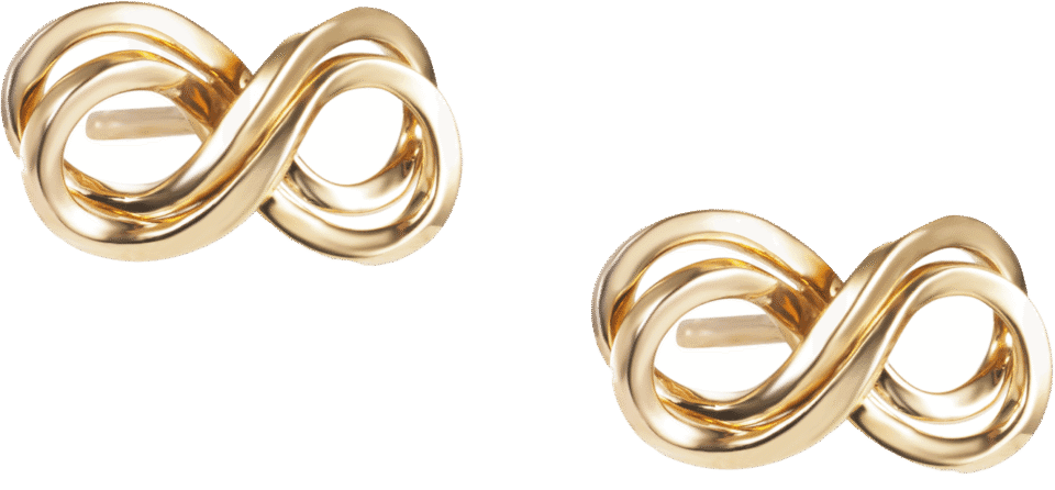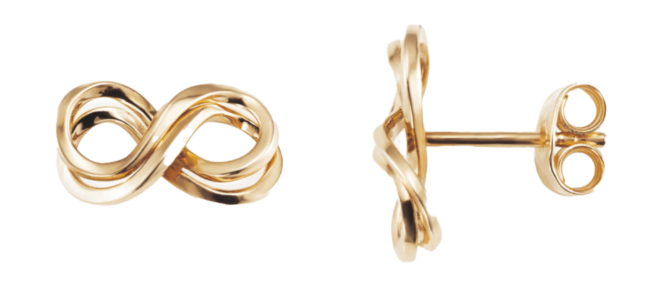 18K kultakorvakorut, joita koristaa ikuisuussymboli. Kaikki korumme valmistetaan kierrätetystä kullasta, valkokullasta ja hopeasta.